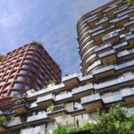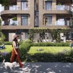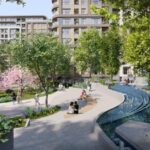 The 15,000 m² pedestrian-only landscape creates a peaceful residential atmosphere in the middle of the city.