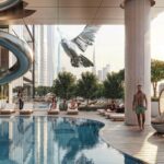 Family pool, kids’ play area, rock climbing wall, cinema, dog park, and gaming lounge.